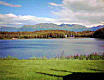 Blick auf einen See mit Wald und Bergen im Hintergrund in Palmer. Von Eagles Estates.