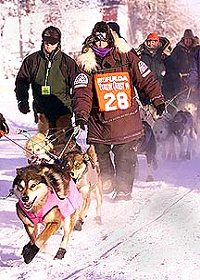 auf einen Hund sein gesamtes Team verloren hat, sehr bekannt. 3-2-1 und Go Sepp startet mit seinem All Alaska Mixed Team ( Hunde aus sieben Kennels) zum Yukon Quest.