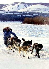 Am Abend gehen wir ins berühmt berüchtigte Spiel-Casino "Diamond Tooth Gerties" dem einzigen Spiel-Casino Kanadas. Am darauffolgenden Mittag trifft Sepp im Checkpoint ein, wo er natürlich zuerst seine Hunde und dann sich versorgt. Wir haben einen Glühwein zubereitet, der bei der Kälte sehr gut bei ihm und seinen Dog-Handlern ankommt. Am nächsten Tag besuchen wir eine vor kurzem wiedergefundene Gold Mine. Um dorthin zu kommen fahren wir mit Skidoo's und angehängtem Schlitten über den zugefrorenen Yukon. Ein fantastisches Erlebnis mit 80 km/h auf Schlittenkufen stehend hinter einem Skidoo "herzufliegen".