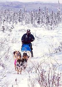 möglich weil in Dawson der vorgeschriebene 36 Stunden Zwangsaufenthalt für Musher und Hunde ist. In allen anderen Checkpoints darf der Musher keine Hilfe von außen annehmen.